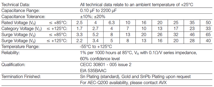 本品系A(chǔ)VX標(biāo)準(zhǔn)型號(hào)鉭電容,共有7種封裝尺寸以便客戶選型使用,產(chǎn)品一般應(yīng)用于小功率的DC/DC轉(zhuǎn)換器和LDO等應(yīng)用。