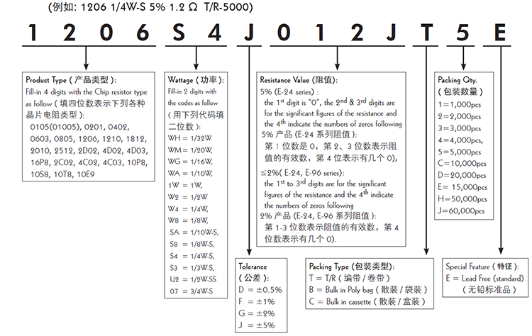 厚膜電阻型號解析表: