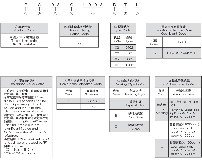 風華對高精度貼片電阻的規格命名與普通厚膜貼片電阻有一定的區別,下面,我們通過具體型號作為例子來說明風華該系列電阻的規格和命名規則: