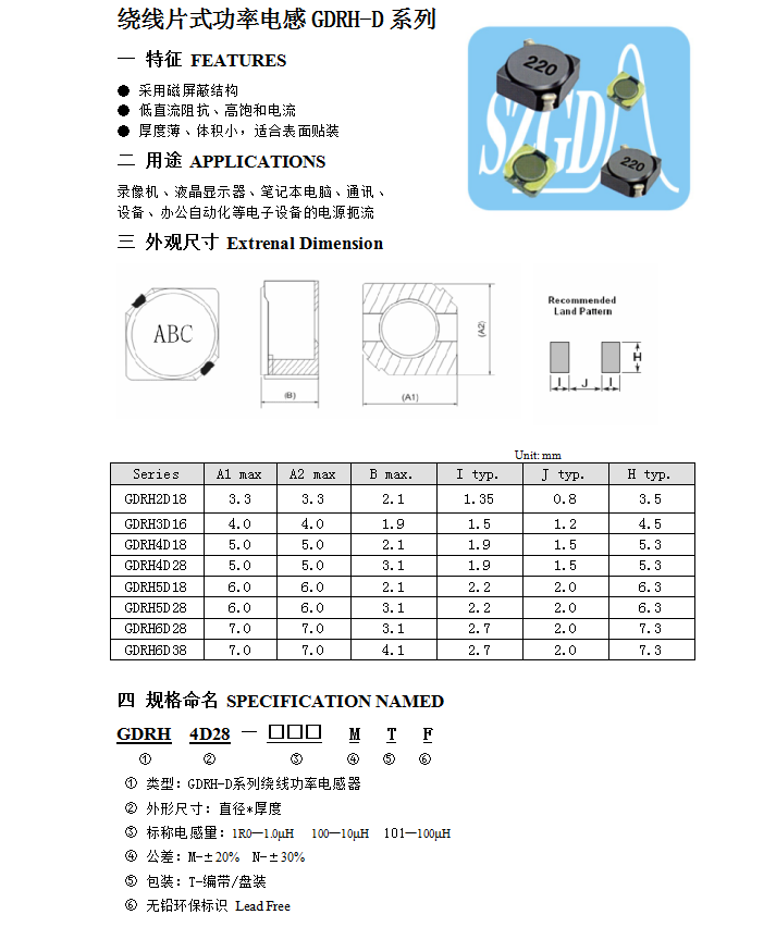 繞線片式功率電感GDRH-D編號:型號:GDRH-D類別:功率電感 |