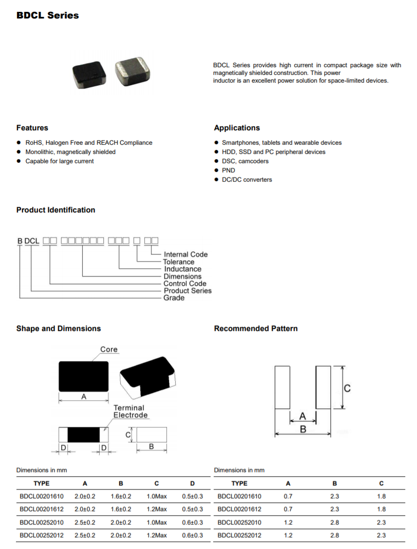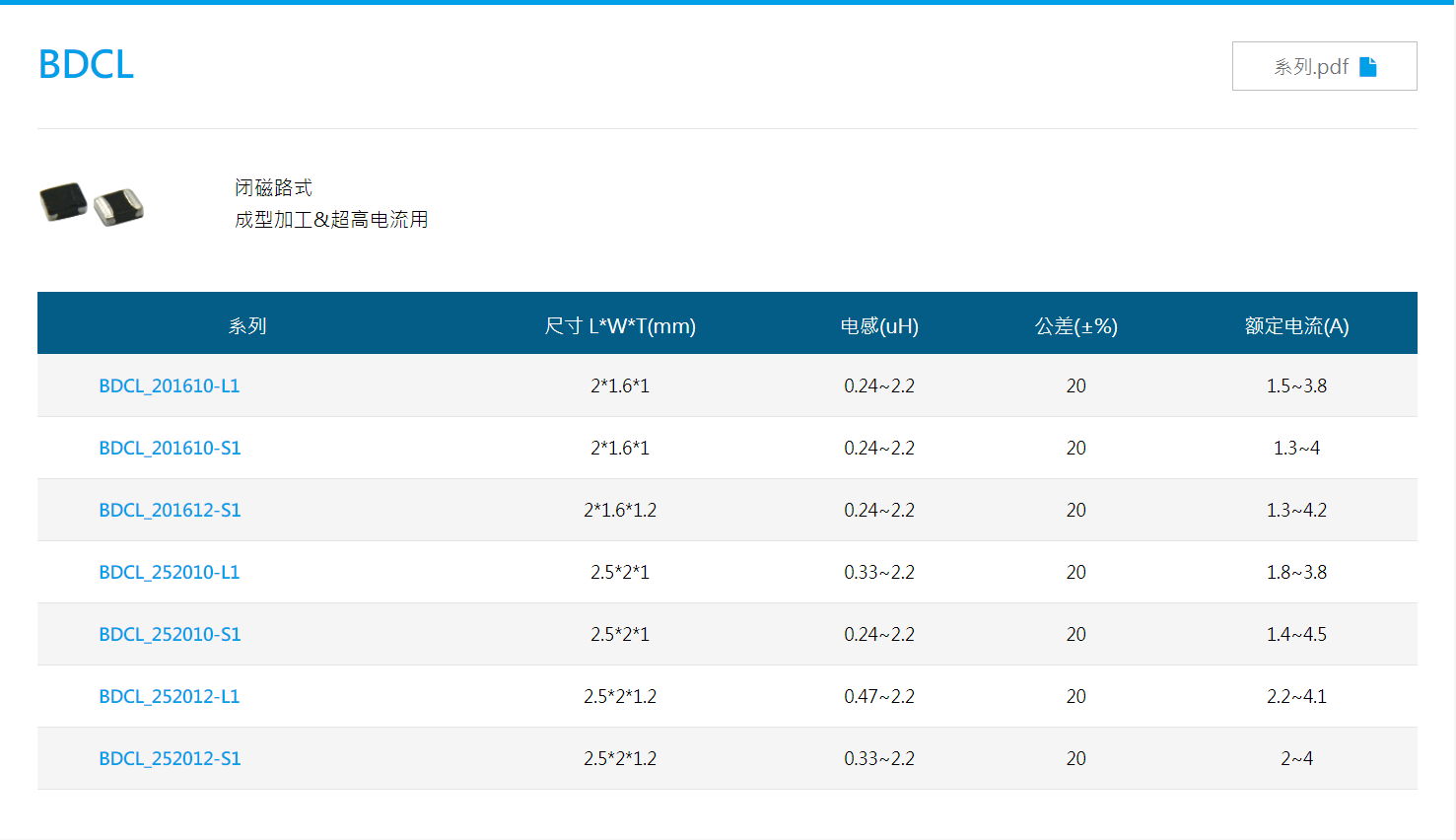 BDHL系列是專為加強PFM和PWM應用性能。q (Rac)值在輕負載和重載時的RDC值都是例外。此外,飽和電流的性能也是最優的,有助于降低紋波電流,提高效率。